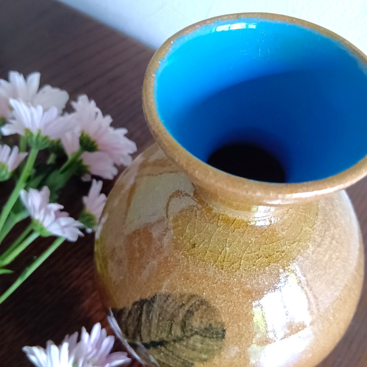 さらにはボディには鳥の羽を手描きし、内側には鮮やかなブルーの釉薬をかけた、空への憧れがいっぱい詰まったユニークな花入れです。