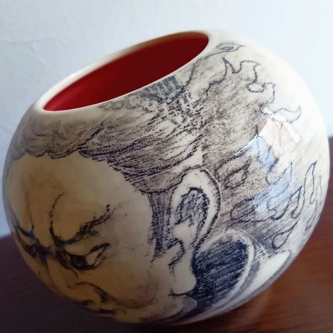I have depicted Virudaka, one of the Four Heavenly Kings. Virudaka’s Sanskrit name means “the one who has grown and expanded,” and among the Four Heavenly Kings—who are said to guard the four cardinal directions of the Buddha’s realm—he is responsible for protecting the south.